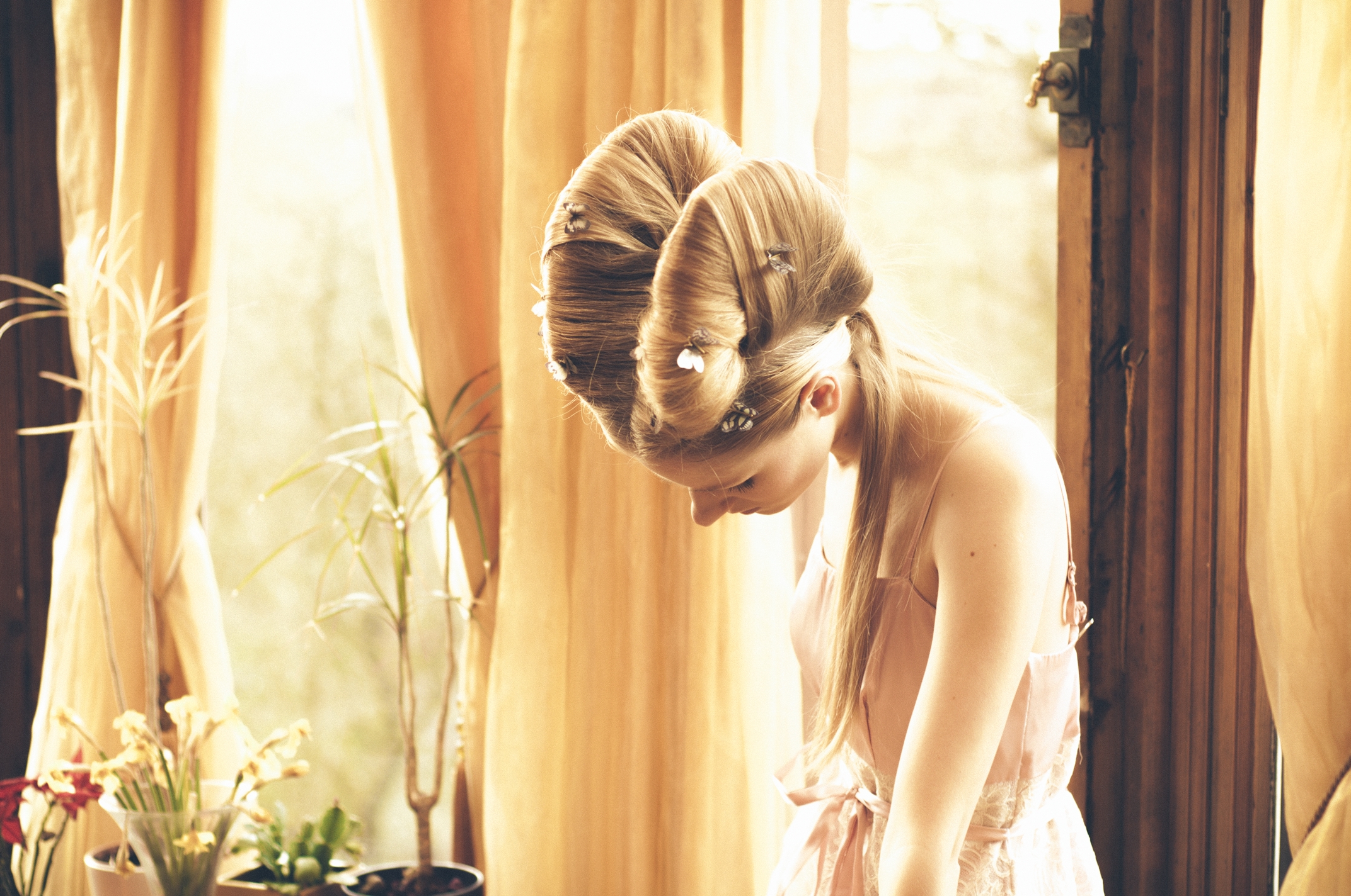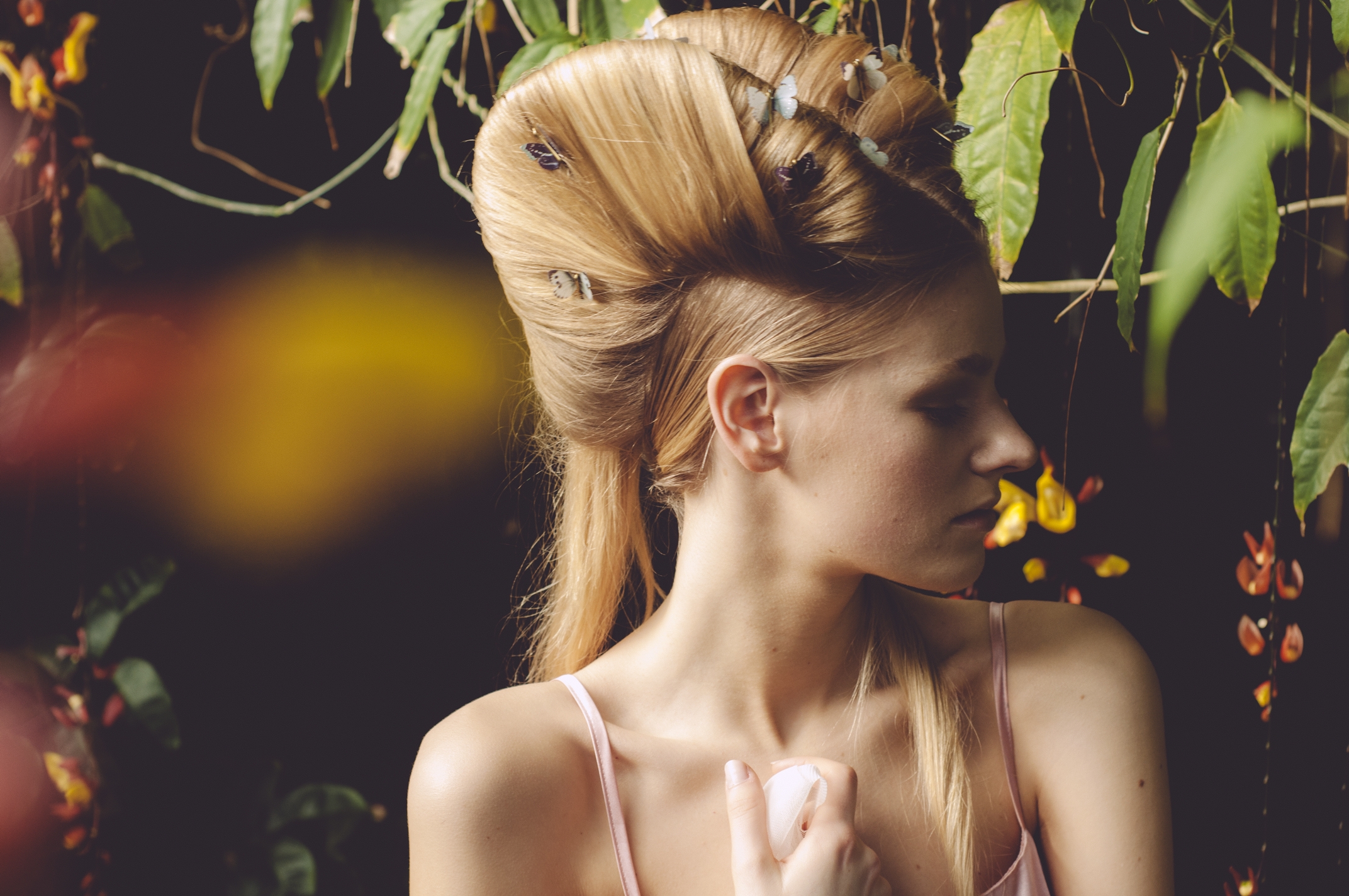 … and here’s what I came up with. The mad hairdo is the handiwork of my college friend Angela Sinclair, who is also caretaker of my mullet these days. I could never have done this myself so I am forever in her debt! Mega-babe model is the stunning Ieva, who is represented here in Glasgow by Model Team.