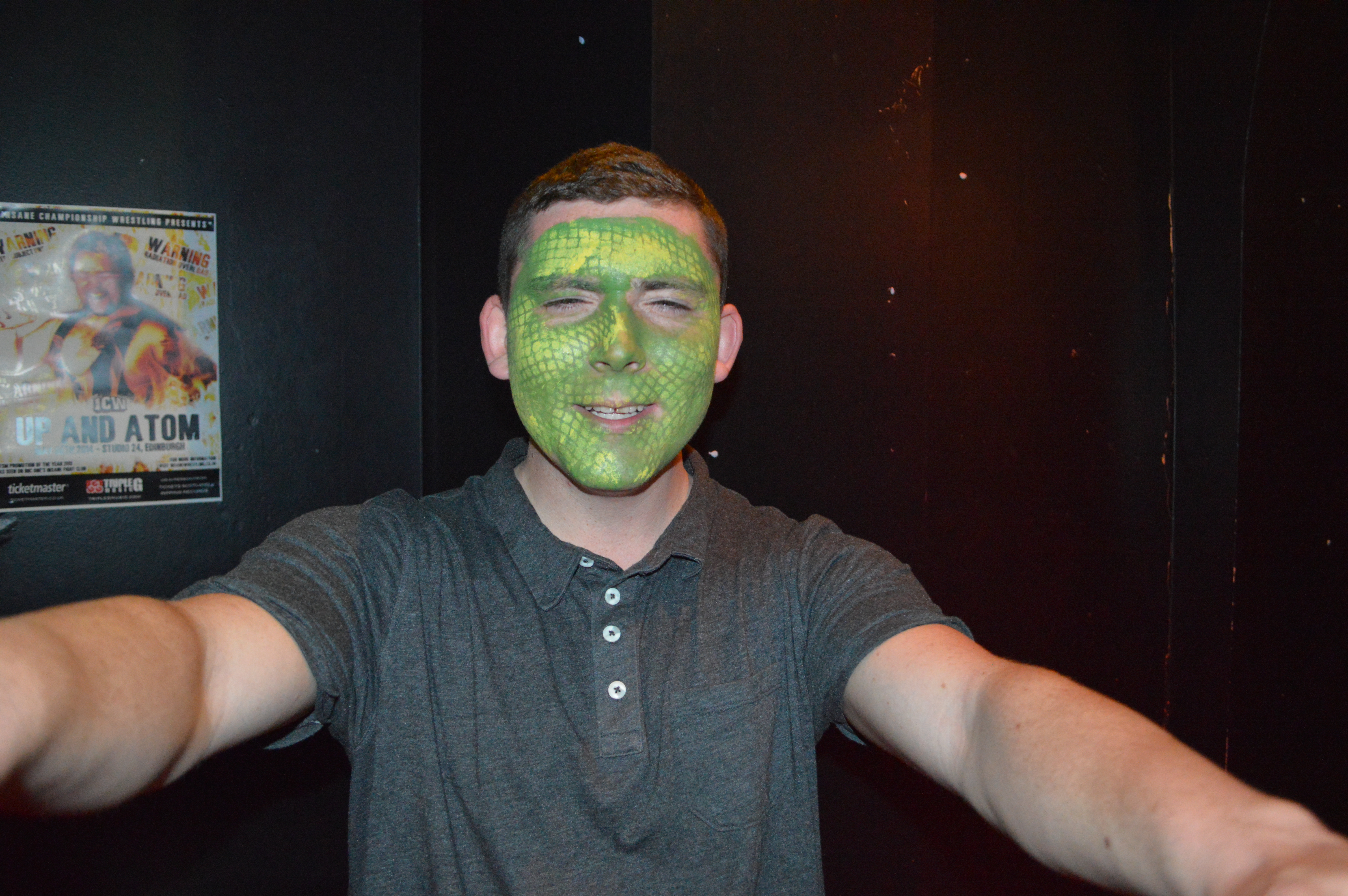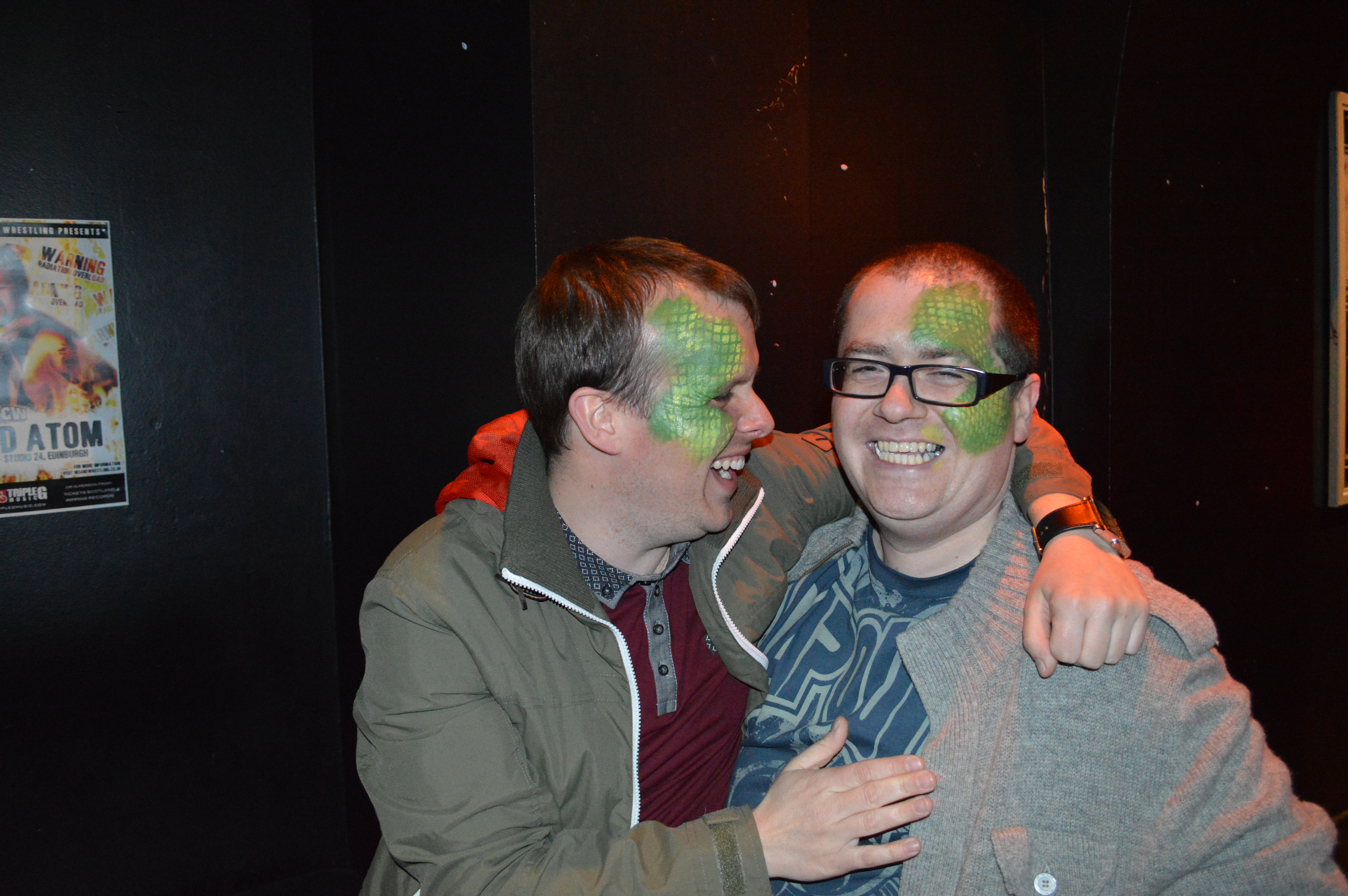 That involved yelling “facepainting! Get your face painted! Show me your LIZARD!” at the punters as they entered the venue. Which for some reason, was extra-hilarious in an Australian accent. Here are some shots of what we did: