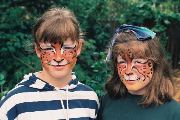 - basic black and white cream makeup (you can see the black tube in the top left-hand photo of the pictures of Alewyn. It comes in every colour of the rainbow – plus an odd range of baby-shit browns and mustards – and you can buy it on eBay for a couple of bucks. With the exception of the blue one, which flakes like f_ck, this makeup is pretty good. Cheap, opaque, wears well without smudging/travelling, easily washes off.)