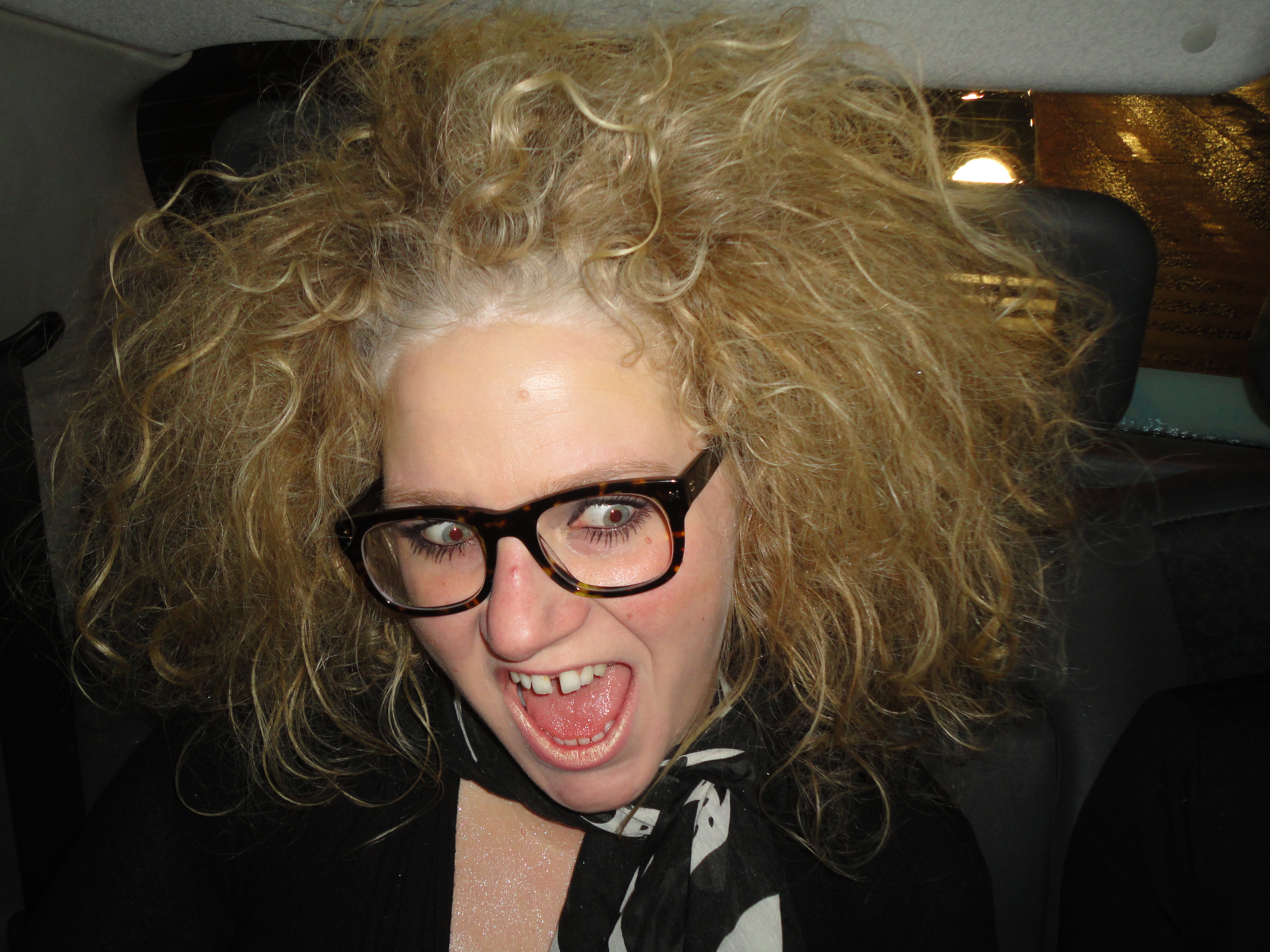 The flash has picked up that Irene’s hair is loaded with Schwarzkopf got2b Volumising Style Powder; a product which has gotten quite mixed/negative reviews online.