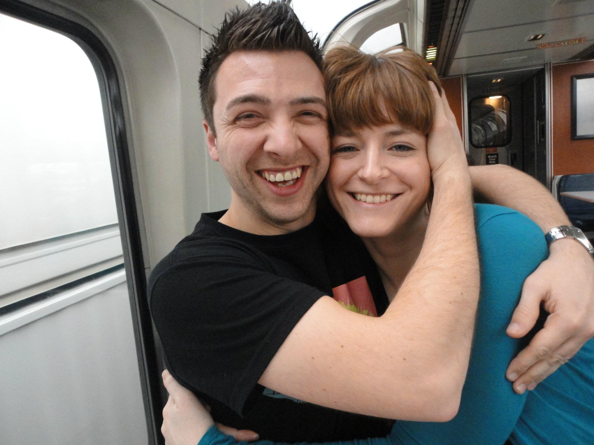 That’s us on the California Zephyr from Chicago to San Francisco, in March 2012.  And here we are in Vegas, with my doing a shocking job of the Amplifier octopus on his arm.